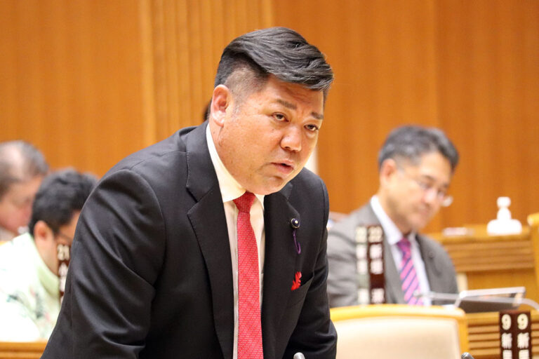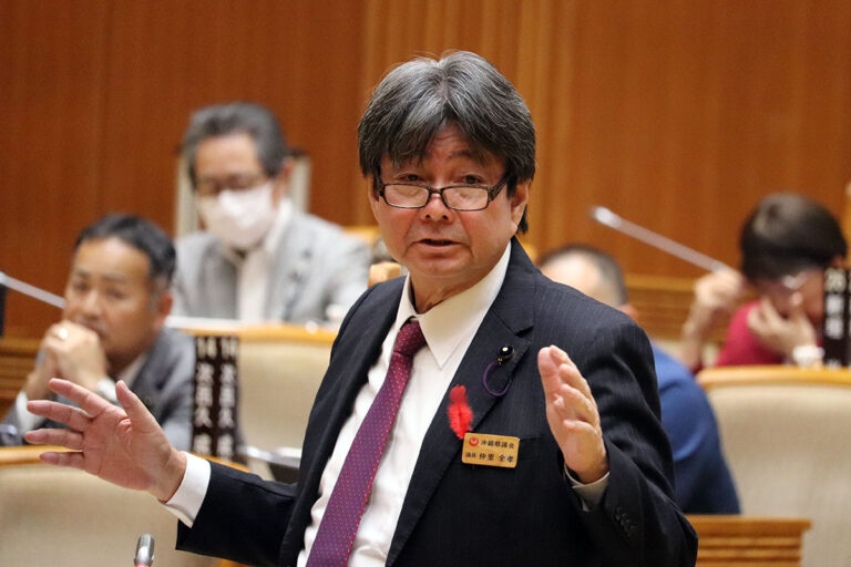 辺野古の埋立では、着々と進む中、知事公約辺野古に基地をつくらせないは破綻している。裁判闘争に終わらせているが知事は判決に従うのか?4年連続の一括交付金の減額で市町村財政は、大きな影響を受けている。県民生活を省りみない知事の政治姿勢こそ沖縄振興の阻害要因ではないか。新たな振興計画の見直しの迫る中、継続すべき必要性は何か。過疎・離島の振興をどうおりこむか。国との対立の中で多くの不安要因が残る