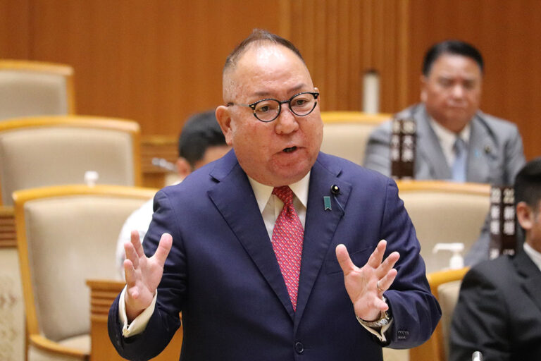 また、与党会派より提出されました議案「自衛隊活動への県民の抗議等に対する防衛大臣の発言に関する意見書」に関しては、我が会派より提出議案に対する質疑及び反対の立場からの答弁を行いました。そして本議案は否決されました。